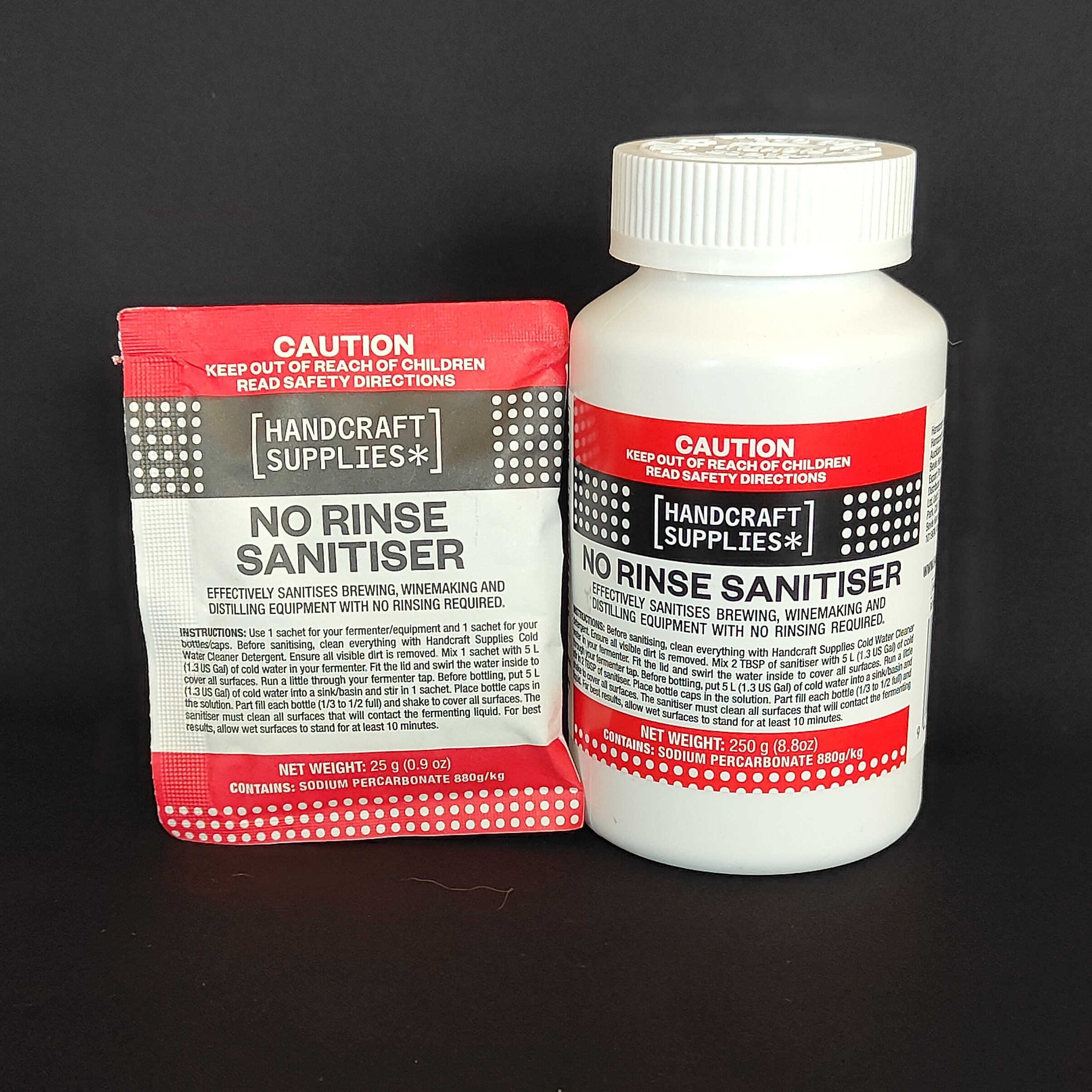 No Rinse Sanitiser makes the vital job of sterilising your equipment easy. It effectively sterilises your equipment with active oxygen and breaks down to leave only oxygen, water and minerals found naturally in water. For best results allow wet surfaces to stand for at least 10 minutes. Weigh out 5 gm per litre of water, and use it to wash all of your equipment.