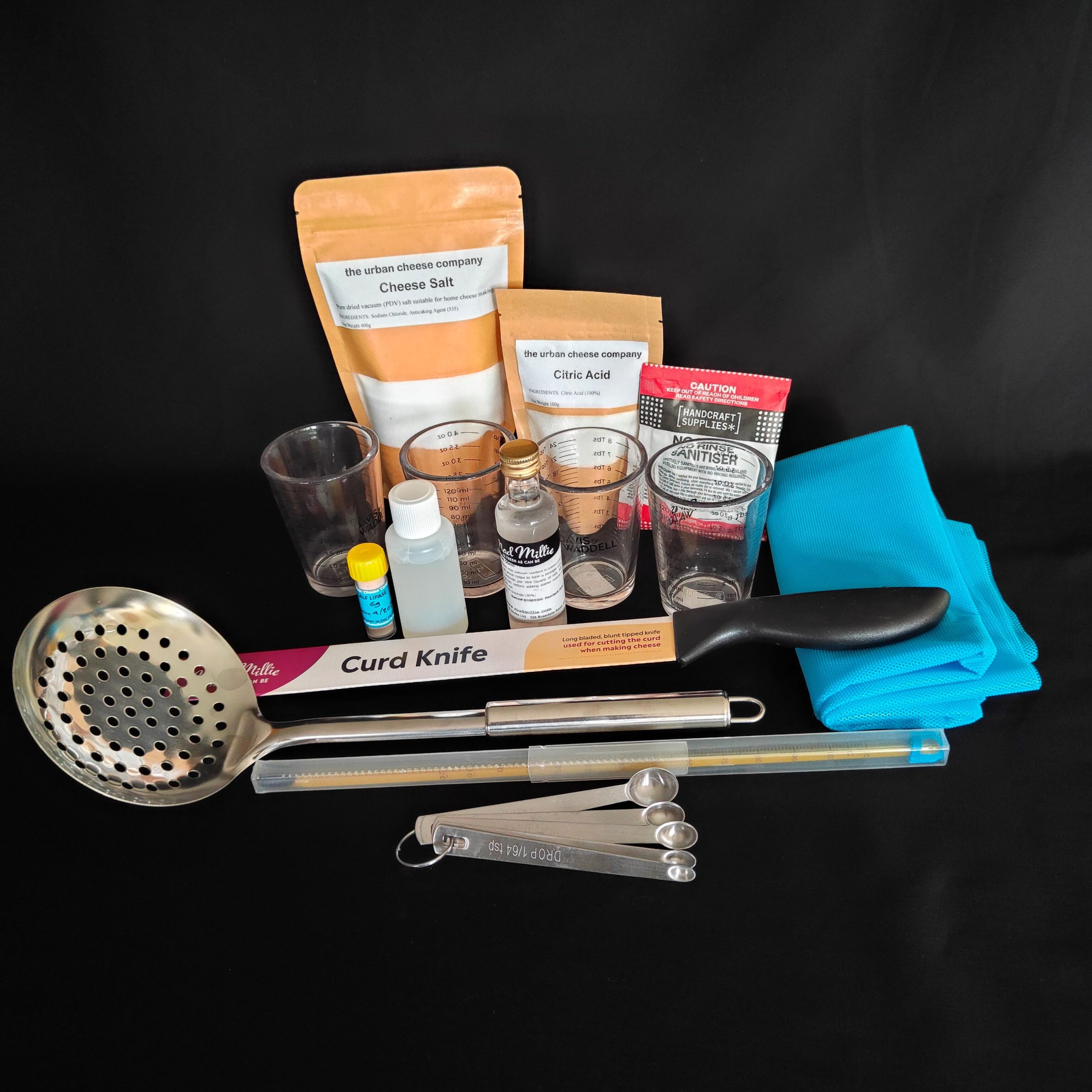 You can choose to by the full kit or just the ingredients. In addition to the kit you will need to have a colander and sterilised waterproof gloves when stretching the hot curd. The recipe includes a description of the gloves I use when making mozzarella.
